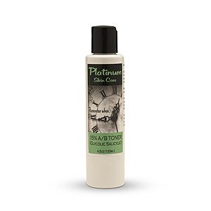 This is a very effective facial astringent toner recommended only for oily and blemished skin. Its balancing pH helps to fight bacteria, to reduce oil secretion, and to dry up blemishes. The high content of Alpha-Hydroxy Acids effectively accelerate the exfoliation of the skin's dead cells, diminish superficial sun damage and reduce the appearance of fine lines. Platinum Skin Care's acid toner has a full 15% of glycolic/lactic/salicylic acid for maximum effectiveness on acne prone and oily skin. The average store bought glycolic toner has only 2% or 3%. It is used before your peels to prepare the skin for further treatment, and also on a daily basis thereafter to help lift away surface impurities. Glycolic, Salicylic, and Lactic acids help to accelerate the removal of dead, dull skin, increase collagen, and reduce the appearance of fine lines, sun damage and hyper pigmentation. Along with reducing the appearance of large pores and acne scarring. They will also help to clear up blackheads and oily/acne prone skin. Acne sufferers please note: It takes approximately 3 weeks for a clogged pore in your skin to actually become a pimple/whitehead... and make its way up to your face. When you start using these glycolic acid products you need to remember to give your skin time to rid itself of the clogged pores that have already formed under your skin. Ingredients: Deionized Water, Glycolic Acid Ultrapure(13%) tm, SD Alcohol, Lactic Acid Ultrapure(1%) tm, Salicylic Acid Ultrapure (1%)tm, Propylene Glycol, Aloe Vera Gel, Licorice Root Extract, Eucalyptus Oil, Sepicontrol, Ammonium Hydroxide (buffering agent), Benzyl Alcohol, Methylisothiazolinone. pH4.5 Read more...